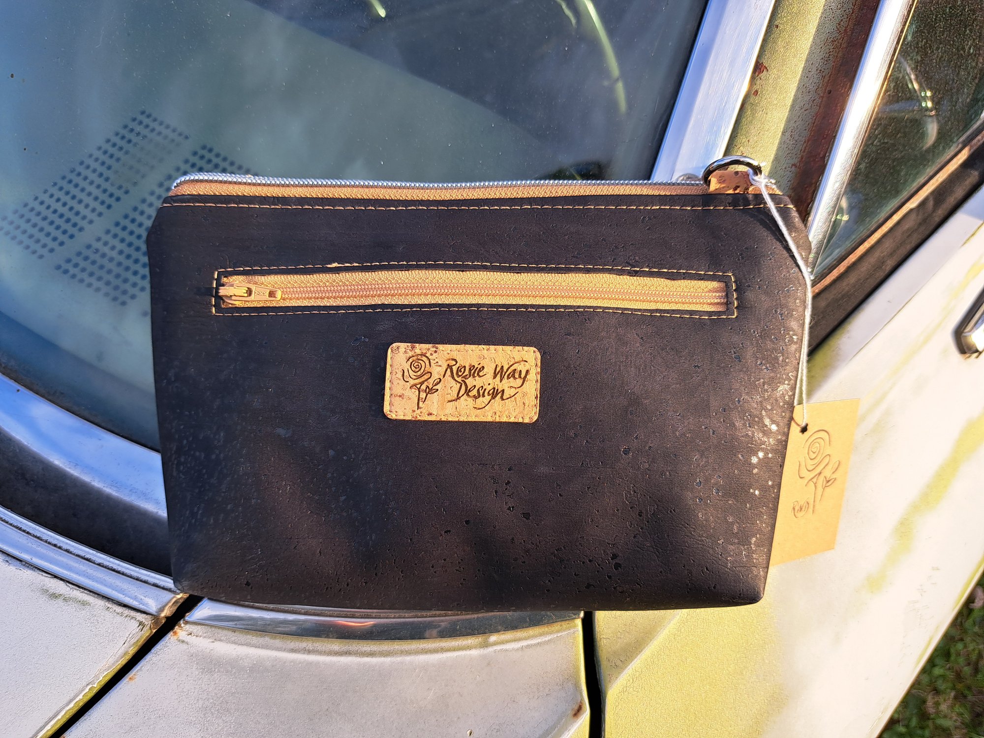 Cork fabric is a vegan alternative to leather. It typically comes from the Mediterranean and made from Cork Oak. Since processing doesn't kill the tree and encourages growth as well as oxygen production, it is a very sustainable material. Cork is very lightweight, durable, hypoallergenic, water resistant, and fire resistant.