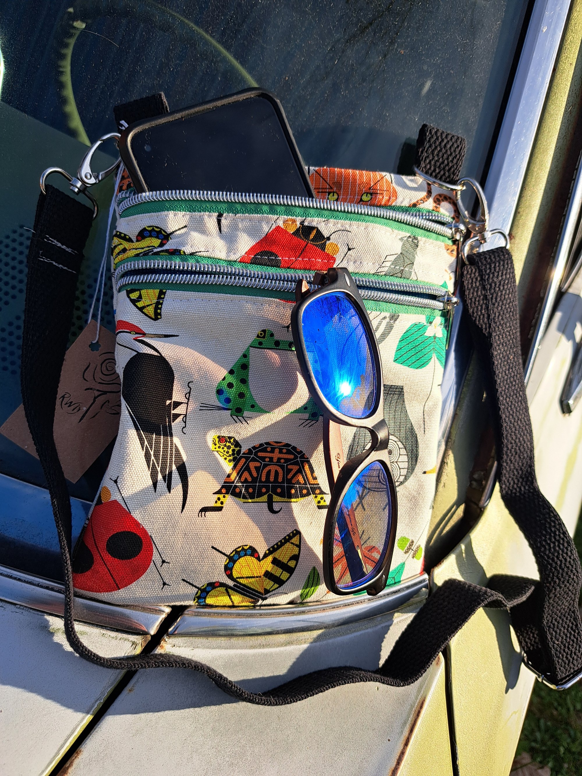 Are you looking for something truly one-of-a-kind? Something lightweight and ready for adventures? Perhaps it's just big enough for your essentials and a snack? If so, this gorgeous bag is ready for you! It has two zipper pockets and an adjustable strap.
