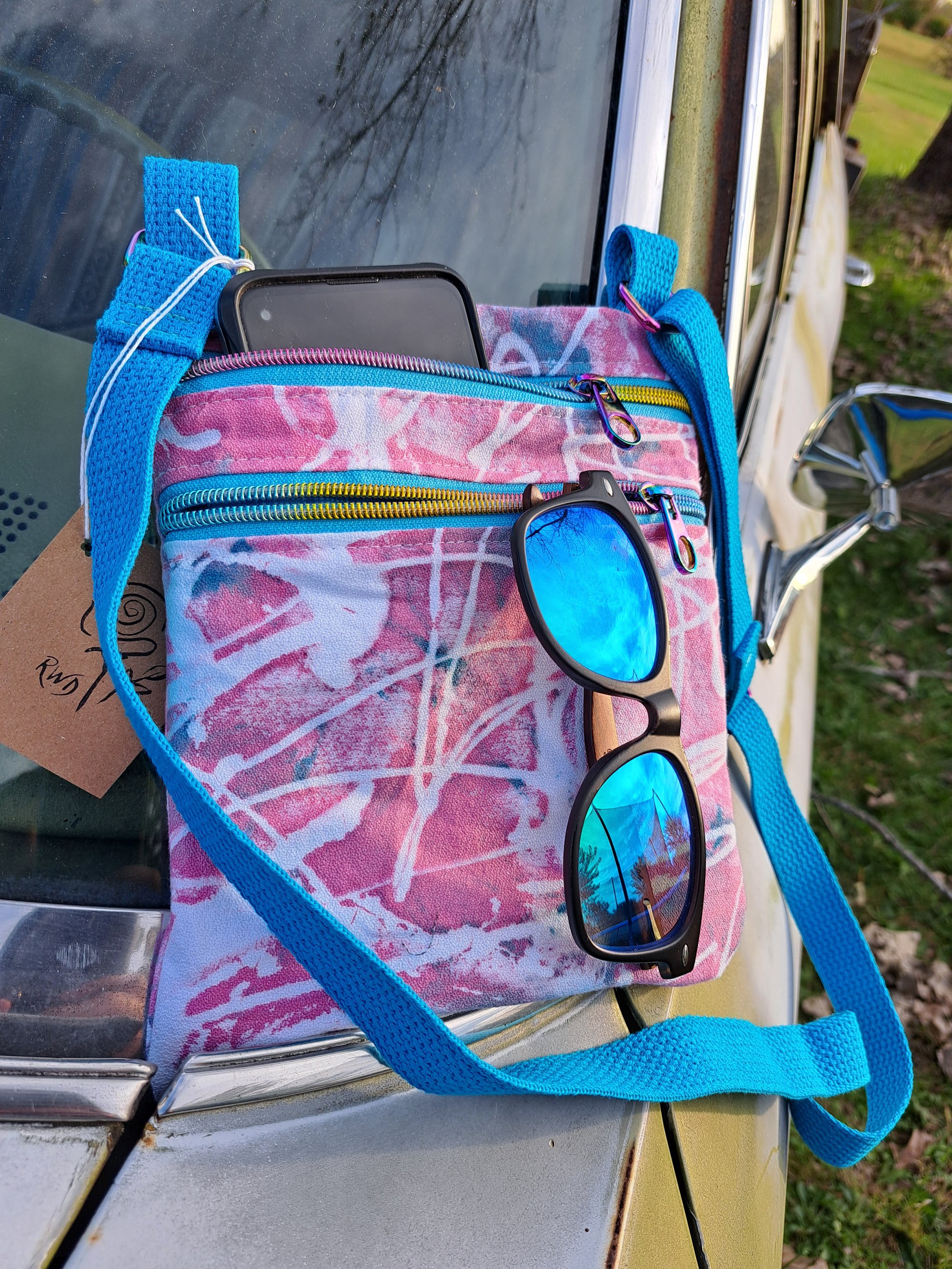 Are you looking for something truly one-of-a-kind? Something lightweight and ready for adventures? Perhaps it's just big enough for your essentials and a snack? If so, this gorgeous bag is ready for you! It has two zipper pockets and an adjustable strap.